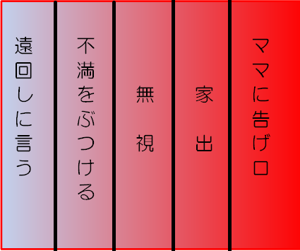 番組では、夫の反撃の度合いが低い順から、「遠まわしに言う」「不満をぶつける」「無視」「家出」「(妻の)ママに告げ口」の項目を挙げ、500人の既婚男性にアンケート。