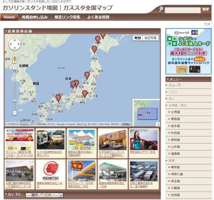 サイト閲覧者は、全国の希望地域ごとにガソリンスタンドをマップ表示により、
