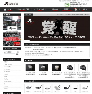 埼玉県朝霞市にて中古ゴルフショップを構える株式会社ゴルファーズ・ガレージ・サムライ(本社:埼玉県朝霞市、代表取締役:横山 宗明)は、中古ゴルフクラブの販売・買取、その他ゴルフ関連グッツを販売するサイト「ゴルファーズ・ガレージ・サムライ EC ショップ」を2013年1月28日(月)に公開致しました。
