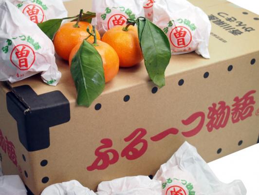 明治23年よりみかん栽培を始めて120周年を迎えようとしている四国の観音寺・仁尾で育てられた「ふるーつ物語」。瀬戸内海に面した温暖な気候、風土に恵まれた地帯で活力ある根に魚粉や有機質肥料で特殊な栽培をしたみかんに11月から12月にかけて味のよい小さい果実に丁寧に袋掛けをして、樹上で完熟させ、出荷前に収穫します。