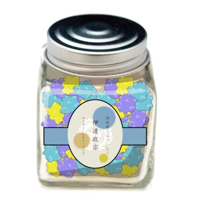 戦国武将・幕末志士をイメージした瓶入りのこんぺいとうです。それぞれのイメージに合わせ、オリジナルで3つの色とフレーバーを組み合わせました。