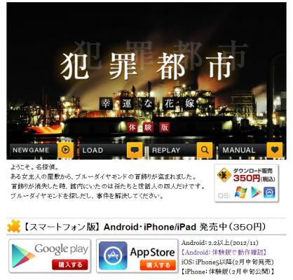 マルチプラットフォーム(Windows・Android・iPhone/iPan)で提供するミステリーアドベンチャーノベルゲームです。