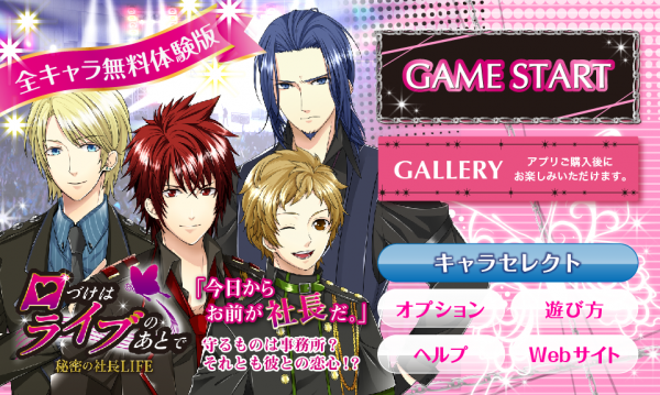 本アプリは小説を読むように、少女漫画を読むように、気軽に楽しめる恋愛シュミレーションゲームです。ストーリー中の選択肢や、プレイ時間の加算ポイントでバンドマンとの好感度を上げて迎える甘いハッピーエンドやドキドキのノーマルエンディングをご用意しました。また、一定の条件をクリアするとシークレット特典をプレゼント!何度でも楽しめる「口づけはライブのあとで」ならではの特典を複数ご用意して恋する女性を応援します。