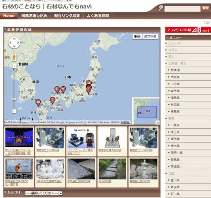 サイト閲覧者は、全国の希望地域ごとに石材店をマップ表示により、