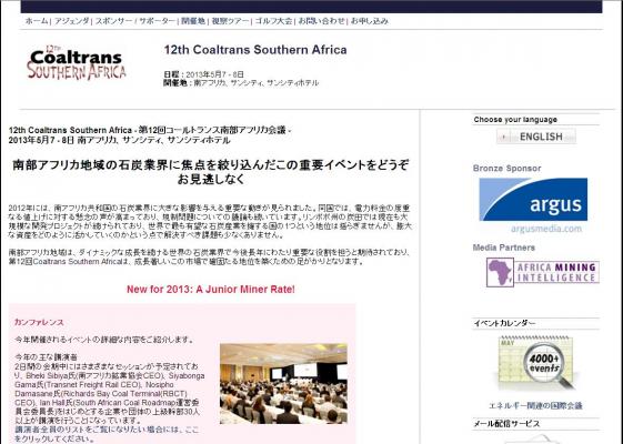 会議:「12th Coaltrans Southern Africa -第12回コールトランス南部アフリカ会議」