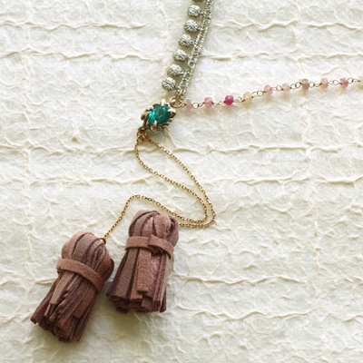 10金や14金などを使った繊細な正統派ジュエリーの他、アパレル素材やビーズなどを使った大振りなコスチュームジュエリーも大胆に展開しています。中心価格帯は16,000円~40,000円。