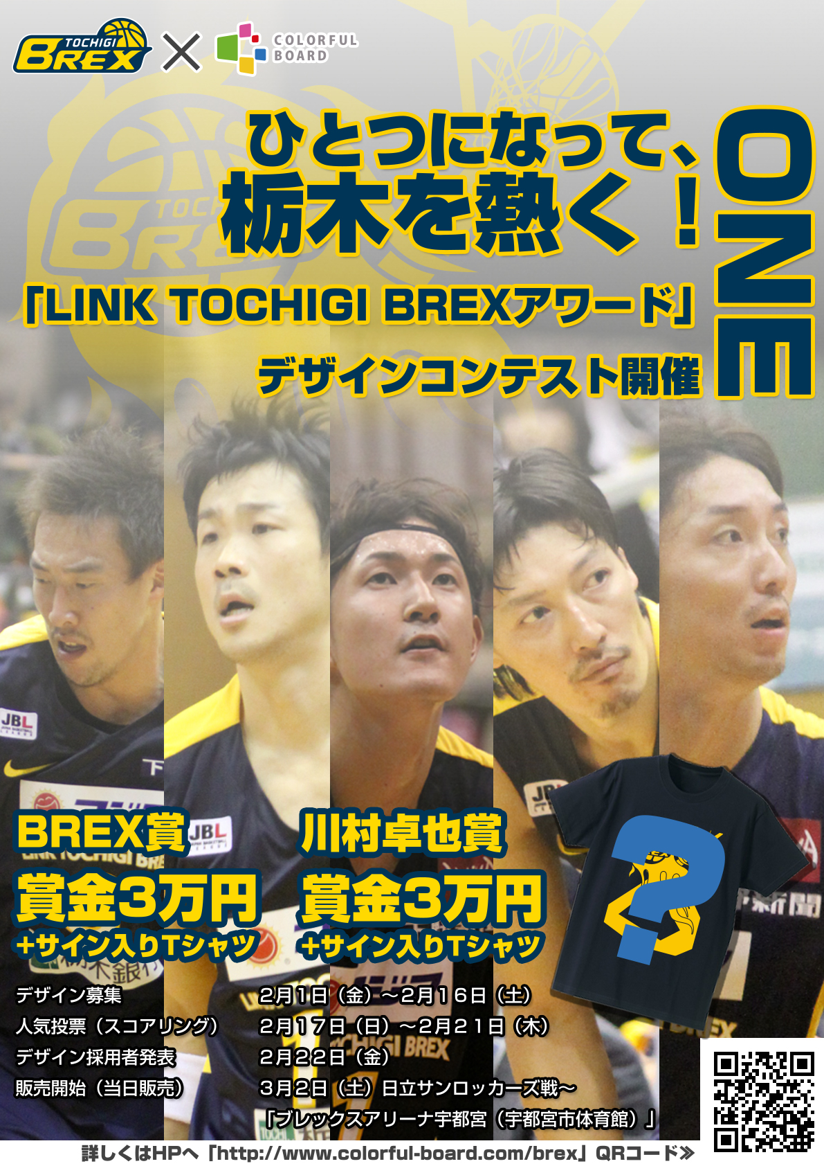 この「LINK TOCHIGI BREX アワード」は、「リンク栃木ブレックス」のファンが一体となり、チームの勝利を後押しする「ONE -ひとつになって、栃木を熱く!」として、応援Tシャツをファンの皆様と一緒に商品企画するものです。