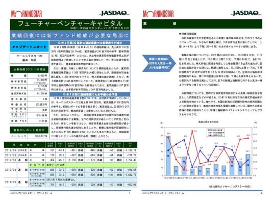 13年3月期2Q累計(12年4~9月)の連結業績は,売上高が170百万円(前年同期比39.7%増),営業損益が247百万円の赤字(前年同期は451百万円の赤字)となった。未上場の営業投資有価証券売上高が前年同期より増加したことで売上高が増加した一方・・・