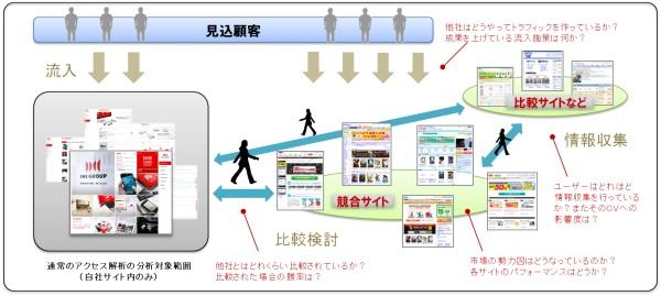これまでIMJ MTLではアクセス解析を通して、クライアント企業に自社サイトの分析サービスを提供してまいりました。その中で、Web戦略立案の精度を高めていくためには、自社サイトのログデータだけでなく、競合サイトのログデータの活用など、自社サイトの客観的な評価が必要となってきています。