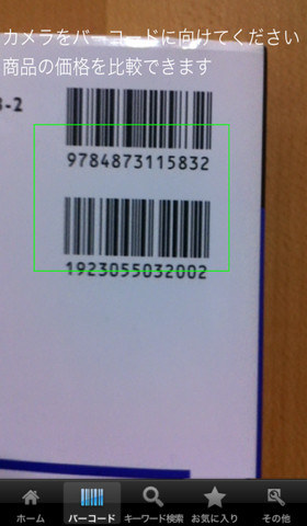 1).アプリを起動し、商品のバーコードにiPhone、iPadのカメラをかざします。