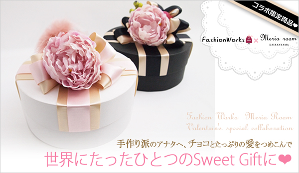 そこで、デコレーションギフトを提案するメリアルームは、おしゃれに敏感な女子の手作りバレンタインを応援するためのラッピングボックス【ファッションワークス&メリアルームコラボ フラワーボックスピオニー】をファッションワークスと共同で企画、開発致しました。