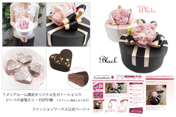 株式会社メリアルーム(所在地:東京都渋谷区、http://meria-room.com、以下メリアルーム)は、株式会社パソナマーケティングが運営する、おしゃれに働く女性を応援する情報コミュニティサイト「FashionWorks」(http://fashion-works.com/、以下ファッションワークス)とコラボレーションし、2013年のバレンタインに手作りチョコ派の女の子を応援するアーティシャルフラワーのギフトボックス【ファッションワークス&メリアルームコラボ フラワーボックスピオニー】を2月1日より発売開始致しました。
