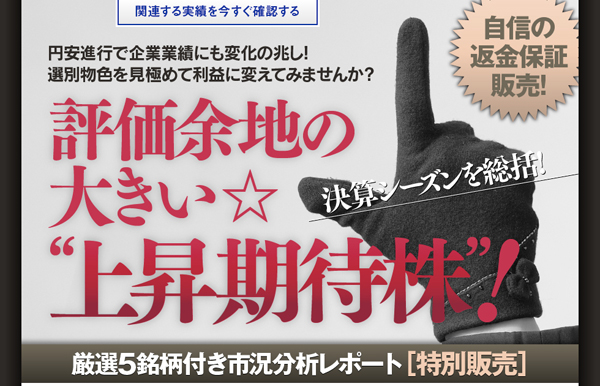・商品名:厳選5銘柄付き市況分析レポート「決算シーズン総括! 評価余地の大きい上昇期待株!」