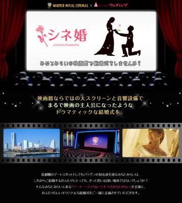 国内最大級の結婚式情報サイトを運営する株式会社みんなのウェディング(本社:東京都中央区、代表取締役:飯尾慶介)が展開する自由な発想でつくる結婚式を推奨する「みんなのウェディングプランナー」と、全国に 60 劇場 496 スクリーンを展開する株式会社ワーナー・マイカル(本社:東京都千代田区、代表取締役社長:ミラード・L.・オゥクス)は「ワーナー・マイカル・シネマズ みなとみらい」で行うオリジナル・ウェディング【シネ婚】を2013年2月7日より共同でご提案します。