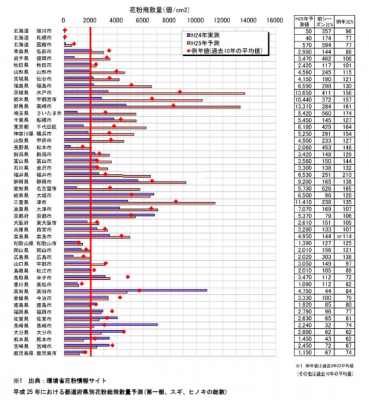 ※1参照:平成25年における都道府県別花粉総飛散量予測(第一報 、スギ、ヒノキの総数)