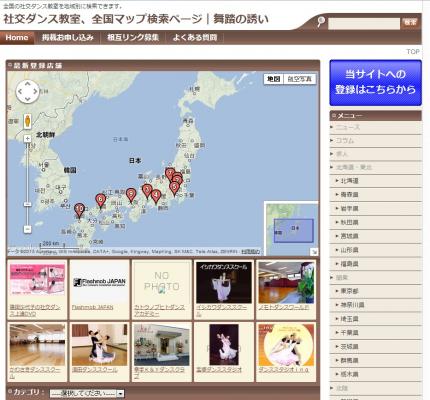 サイト閲覧者は、全国の希望地域ごとに全国の社交ダンス教室をマップ表示により、