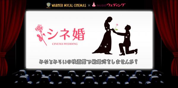 国内最大級の結婚式情報サイトを運営する株式会社みんなのウェディング(本社:東京都中央区、代表取締役:飯尾慶介)が展開する自由な発想でつくる結婚式を推奨する「みんなのウェディングプランナー」と、全国に 60 劇場 496 スクリーンを展開する株式会社ワーナー・マイカル(本社:東京都千代田区、代表取締役社長:ミラード・L.・オゥクス)は「ワーナー・マイカル・シネマズ みなとみらい」で行うオリジナル・ウェディング“シネ婚”を2013年2月7日より共同でご提案します。