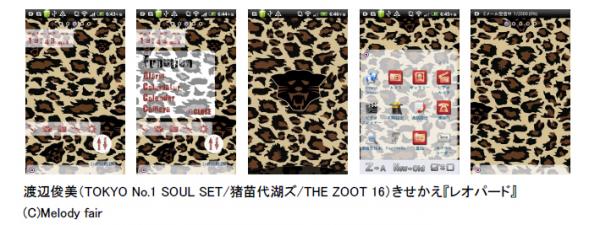 きせかえの内容は男性にも女性にも人気のレオパード・デザインを使用したスタイリッシュなモデルです。またダウンロードしたアプリアイコンも視認性が高い状態にレイアウトされた画面となっており、さらに時計表示もあります。ファンならずともスタイリッシュな世界が堪能できます。