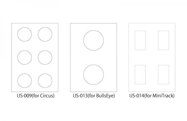 IJS-009(for Circus)は60枚、IJS-013(for Bullseye)は40枚、IJS-014(for MiniTrack)は20枚のインクジェットシールを同梱しています。シールの貼り替えや万が一のプリントミスも安心です。余ったシールはデザインシールとして、単体で使うことができます。