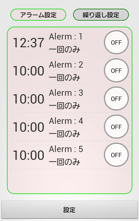 ・設定した時間に音がなるアラームと、特定の間隔で繰り返しアラームを実行する2種類のアラーム機能を搭載しています。