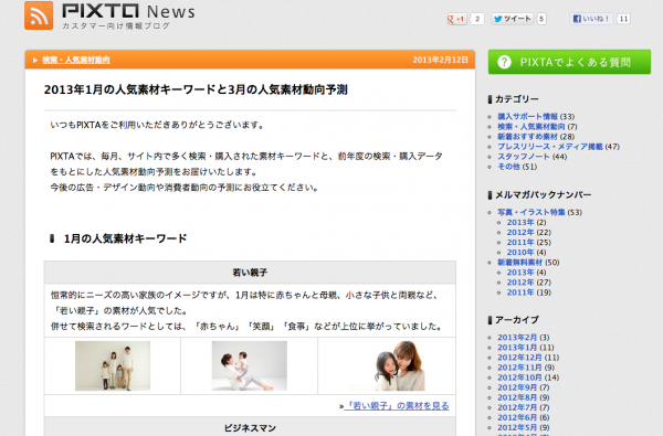 2013年1月の人気素材キーワードと3月の人気素材動向予測を発表