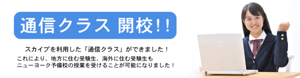 「通信クラス」の開校により、自宅にいながらにして「ニューヨーク予備校」の慶應義塾ニューヨーク学院受験対策学習を行うことが可能になります。