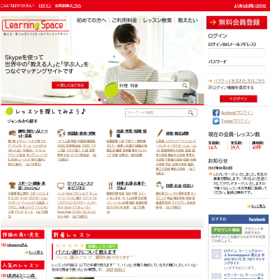 Learning Spaceは世界中の「教える人」と「学ぶ人」を無料インターネットテレビ電話「Skype(スカイプ)」でつなげるマッチングサイトです。