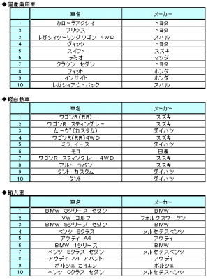 その他、4位ヴィッツ(トヨタ)、6位デミオ(マツダ)も10位以内に返り咲き、トップ10のうち5車種が入れ替わる結果と