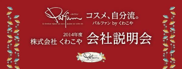 化粧品・小売販売を運営する株式会社くわこや(本社:愛知県西尾市、代表取締役:野村和弘)が展開する「パルファン」と、全国に 60 劇場 496 スクリーンを展開する株式会社ワーナー・マイカル(本社:東京都千代田区、代表取締役社長:ミラード・L.・オゥクス)は、「株式会社くわこや(パルファン)」の2014年度新卒採用トップセミナー(会社説明会)を「ワーナー・マイカル・シネマズ大高」の劇場にて、2013年2月15日(金)に開催します。