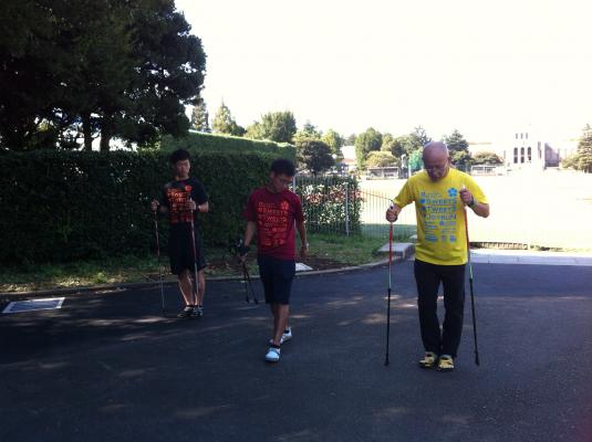 「正しい姿勢」「楽な歩き方」「美しいスタイル維持」「健康な体作り」をノルディックポールを使用し、Vibramの試履きをしてわかりやすくレクチャーします。