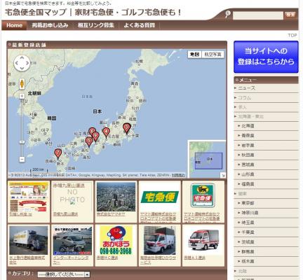 サイト閲覧者は、全国の希望地域ごとに全国の宅急便取次店をマップ表示により、