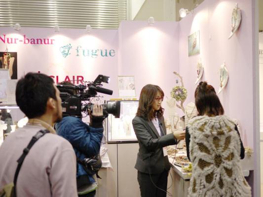 ▼ 「ガールズジュエリー東京」の出展中に取材を受けている様子