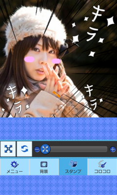 撮った写真やギャラリーから選択した画像に背景やスタンプ・効果音を付けてオリジナル画像が作れる!