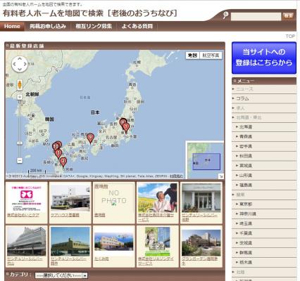サイト閲覧者は、全国の希望地域ごとに全国の有料老人ホームをマップ表示により、