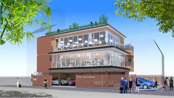「フィル・パーク京都河原町(仮称)」は、1Fは駐車場、2Fはカフェ、3Fは飲食店、屋上は庭園サロンが予定されており、近隣の皆さまのコミュニティーの場としてお役立ていただけると同時に、環境に優しい建築としても皆さまに愛される存在になることを願っております。