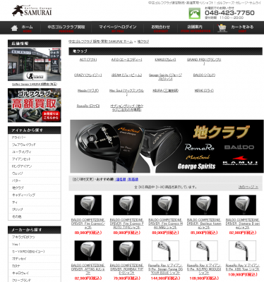 ゴルファーズ・ガレージ・サムライ EC ショップ 地クラブ販売ページ