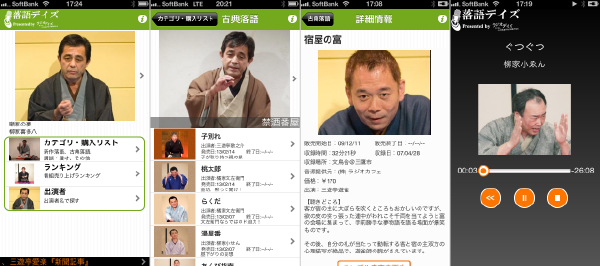 古典落語や新作落語といったカテゴリ検索や出演者名での検索も可能なため、ユーザーの好みに合わせて落語を検索し、購入することができます。
