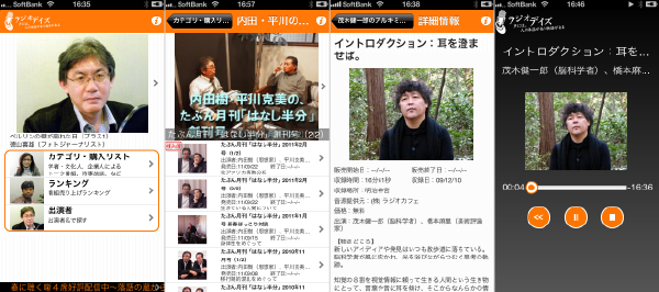 配信されるラジオ音声は、随時更新されており、「ラジオの街で逢いましょう」、田中宇の「世界はこう読め!」、かとうかず子「ハート&ハート」などが楽します。現時点で309個を配信しており、充実のラジオ音声アプリとなっております。