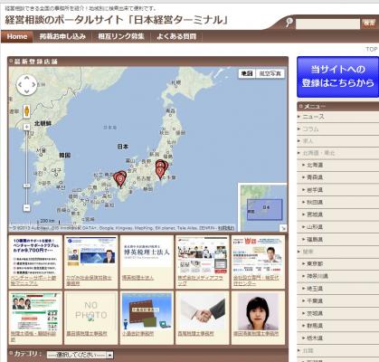 サイト閲覧者は、全国の希望地域ごとに全国の経営相談できる事務所をマップ表示により、