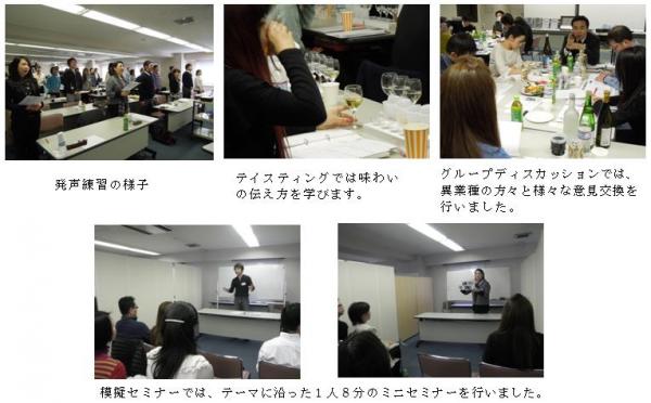 また、日本酒・焼酎の基礎知識をおさらいするとともに、消費者にわかりやすく伝えるために専門用語をいかに噛み砕いて説明するのかを学びました。また、セミナーを開催するには、しっかりとした企画が必要です。誰に対して行うセミナーであるか、開催する季節はいつにするか等、現在日本酒学講師として活躍している講師より、魅力的なセミナーになるためのテクニックなどを学びました。