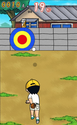 「壁あて」は主人公の「たけお」君が、ボールを的に当てつつ壁あてをするシンプルなゲームです。