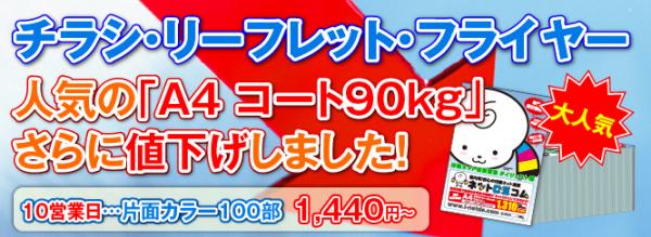ありとあらゆるシーンで活躍するチラシは販促の原点です。特に需要が多く、多くの印刷物の中でも圧倒的なシェアを占めています。ネットDEコムでは、お客様の期待にこたえ、A4チラシ・リーフレット印刷のコート90kgを値下げ致しました。
