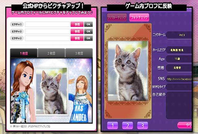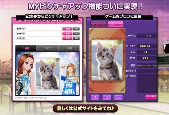 (1)『マイオーディション』公式サイトで掲載したい画像を登録してゲーム内の“マイ情報”に表示させることができるシステムです。