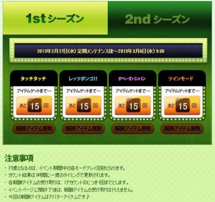 1stシーズン 2013年2月27日(水)定期メンテナンス後~2013年3月6日(水)9:00