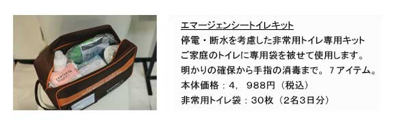 弊社オリジナル「エマージェンシートイレキット」のご紹介 40,000個販売のお奨め商品です。
