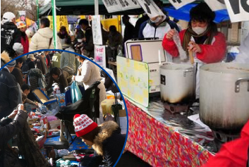 トレーニングを目的に各200食、無料で「炊き出し」を振る舞い、寄付金を募ります。