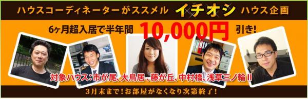 ご入居から6ヶ月間、お家賃10,000円引き 初期契約期間 6ヶ月以上のご契約の方。