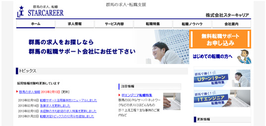 群馬県にて人材紹介業を展開する株式会社スターキャリアは自社の「群馬の求人・転職情報サイト」に看護師・薬剤師・理学療法士・作業療法士などの医療関係、介護職などの福祉関係の転職情報を2013年3月1日に掲載しました。