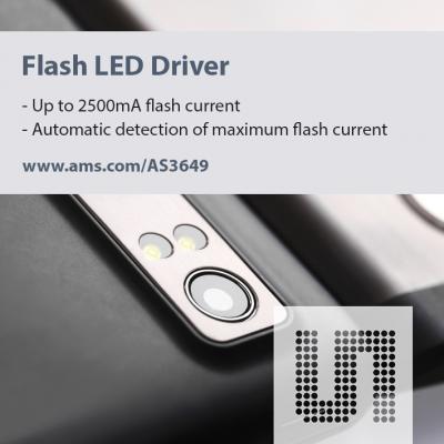 ams(日本法人:amsジャパン株式会社、東京都品川区、カントリーマネージャー 岩本桂一)は本日、携帯電話のカメラ用の新たなインテリジェントLEDドライバ、「AS3649」を発表しました。本デバイスは、携帯電話バッテリの最低動作電圧を下回ることなく、フラッシュを最大限に明るくします。