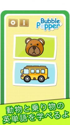 英語学習は幼少時のトレーニングが重要であり、特に6歳までにネイティブ・スピーカーの話す英語に慣れておくと、発音もネイティブ・スピーカー並にすることが可能です。 当社が開発したバブルポッパーは、子ども向けの英単語フラッシュカードアプリです。このアプリは、新しい単語を習得できるように設計されており、スペルのシャボン玉を弾いて楽しみながら英単語ボキャブラリーを増やすことができます。 今回は、動物と乗り物編を収録しており、今後、様々なジャンルのシリーズを展開予定です。